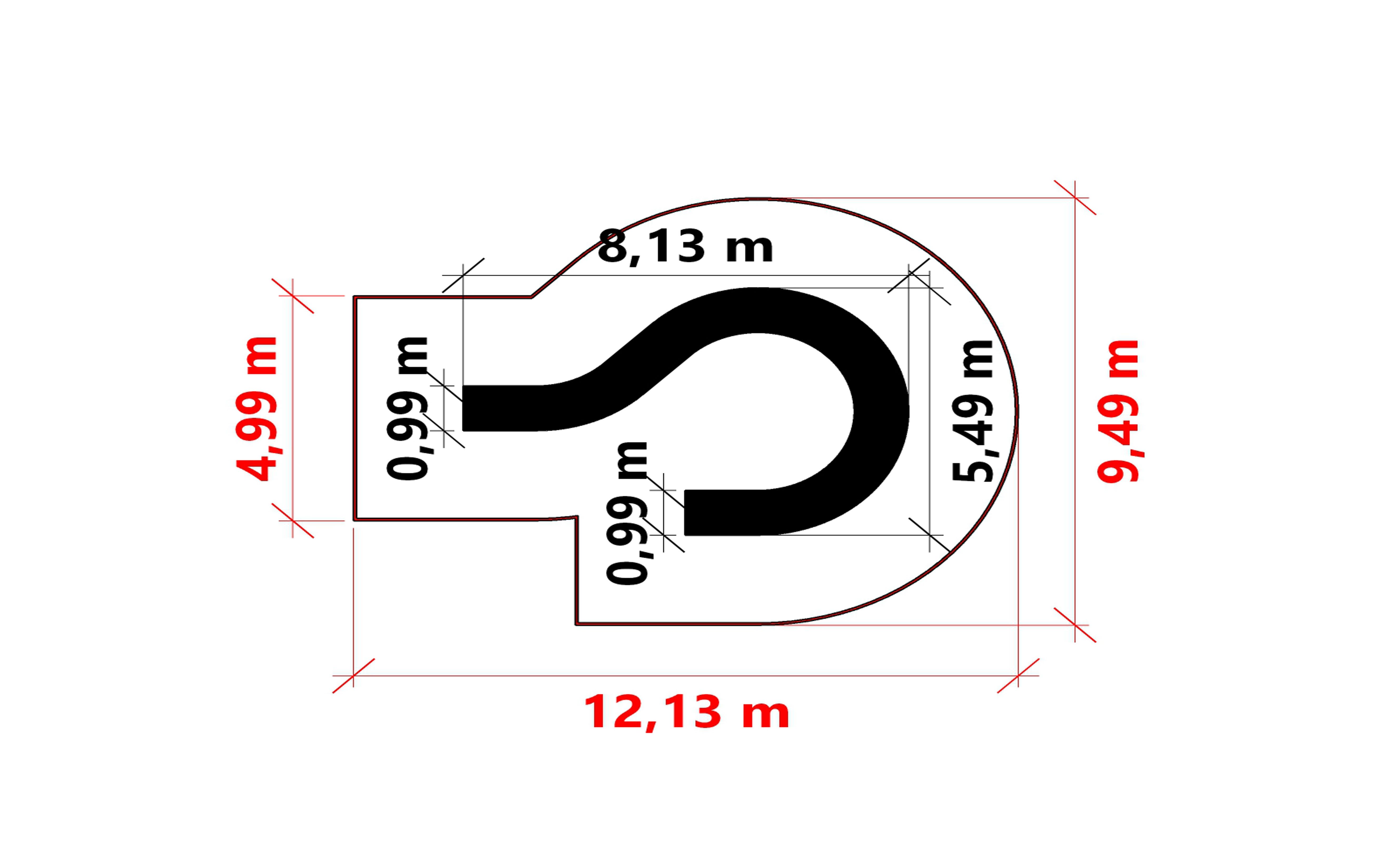 Oblouková lávka pro jízdu na kole se stoupáním / klesáním k trénování zatáčení za jízdy. Lávka byla upravena pro vozíčkáře.