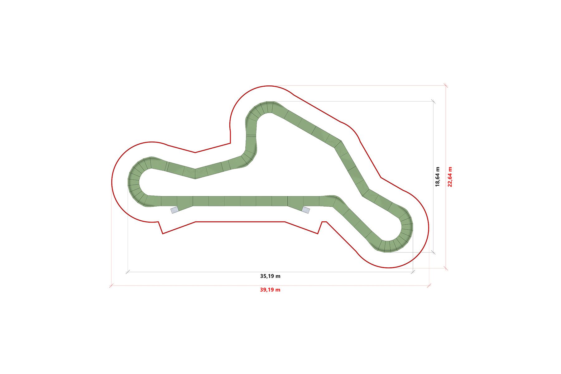 Dráha je vyrobena dřevěnou technologií na bázi modulární překližkové konstrukce s odolným jízdním povrchem. Modulární systém umožňuje rychlou instalaci na asfalt, beton nebo vhodně připravený podklad, stejně jako možnost budoucího rozšíření a změny konfigurace dráhy.