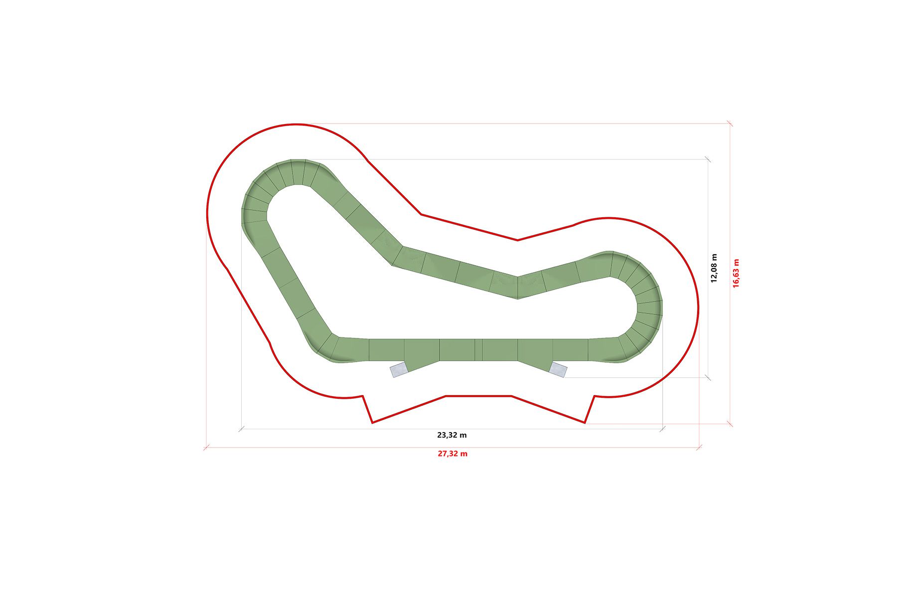 Dráha je vyrobena dřevěnou technologií na bázi modulární překližkové konstrukce s odolným jízdním povrchem. Modulární systém umožňuje rychlou instalaci na asfalt, beton nebo vhodně připravený podklad, stejně jako možnost budoucího rozšíření a změny konfigurace dráhy.