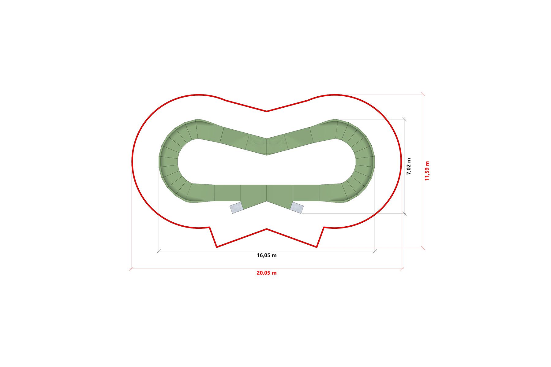 Dráha je vyrobena dřevěnou technologií na bázi modulární překližkové konstrukce s odolným jízdním povrchem. Modulární systém umožňuje rychlou instalaci na asfalt, beton nebo vhodně připravený podklad, stejně jako možnost budoucího rozšíření a změny konfigurace dráhy.