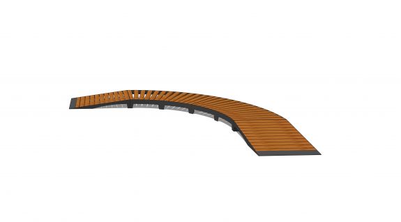 90-graders buet cykelbro med op- og nedstigning. Gangbroen er tilpasset kørestolsbrugere.