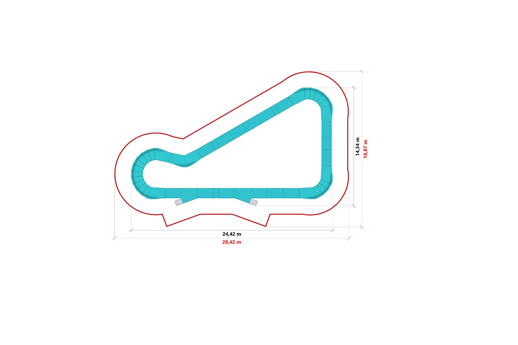 Den 67 m lange RIVER TF009 pumptrack er en modulær cykelbane, der er designet til cykler, skateboards, inline-skates og løbehjul. Banens layout er baseret på en rytmisk sekvens af pukler og sving, som gør det muligt at holde farten oppe ved at arbejde ordentligt med kroppen uden at skulle træde i pedalerne eller...