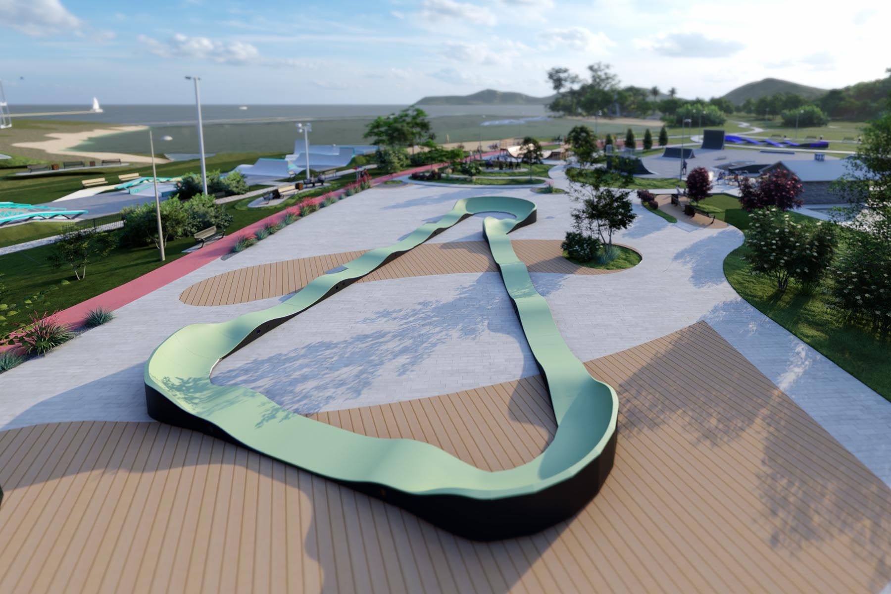 RIVER PF7E pumptrack er en forlænget bane med en længde på 66,8 m, designet til cyklister, der ønsker udfordringer og sjov. Den dækker et område på 20,67 m x 20,27 m, hvilket giver en bred og varieret bane, der er ideel til brugere på alle niveauer. Takket være sit design er Pumptrack RIVER PF7E ideel til parker,...