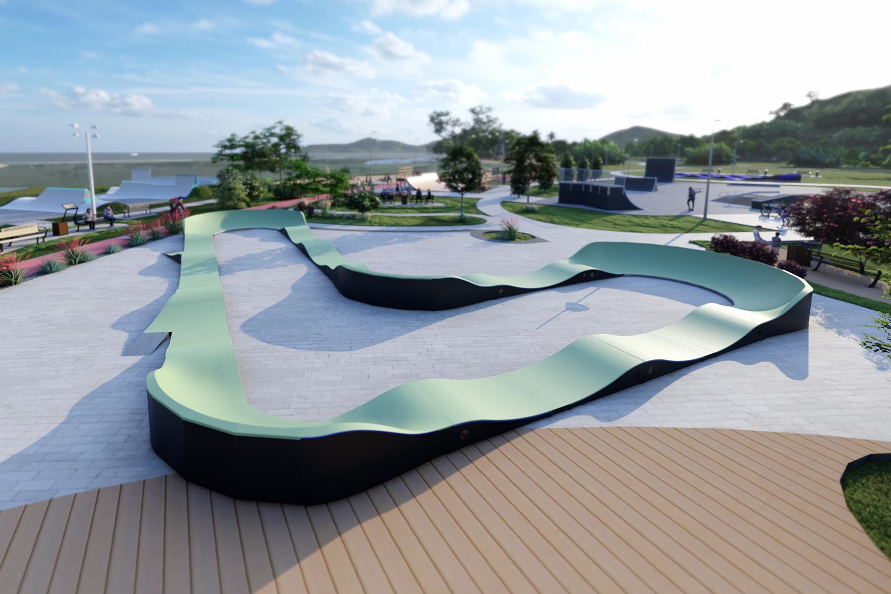 Η πίστα Pumptrack GLACIER PF6E είναι μια προηγμένη πίστα με επιφάνεια λειτουργίας μήκους 64,9 μέτρων, σχεδιασμένη για τους λάτρεις της ποδηλασίας όλων των επιπέδων. Καλύπτει επιφάνεια 17,52m x 20,61m, προσφέροντας μια ευρύχωρη και ποικίλη πίστα για οδήγηση. Χάρη στη στιβαρή κατασκευή και τον προσεγμένο σχεδιασμό της, η πίστα Pumptrack GLACIER PF6E είναι ιδανική για πάρκα, χώρους αναψυχής και άλλους δημόσιους χώρους, προσφέροντας μια έντονη εμπειρία και ενεργή αναψυχή.