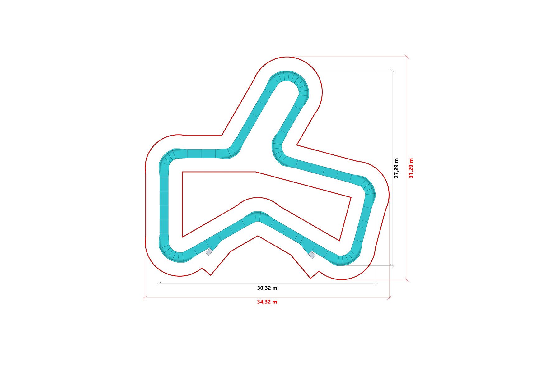 Modular design allows for quick installation and possible reconfiguration in the future. Thanks to a system of adjustable feet, the track can also be installed on uneven ground, which allows the facility to be adapted to different recreational spaces.