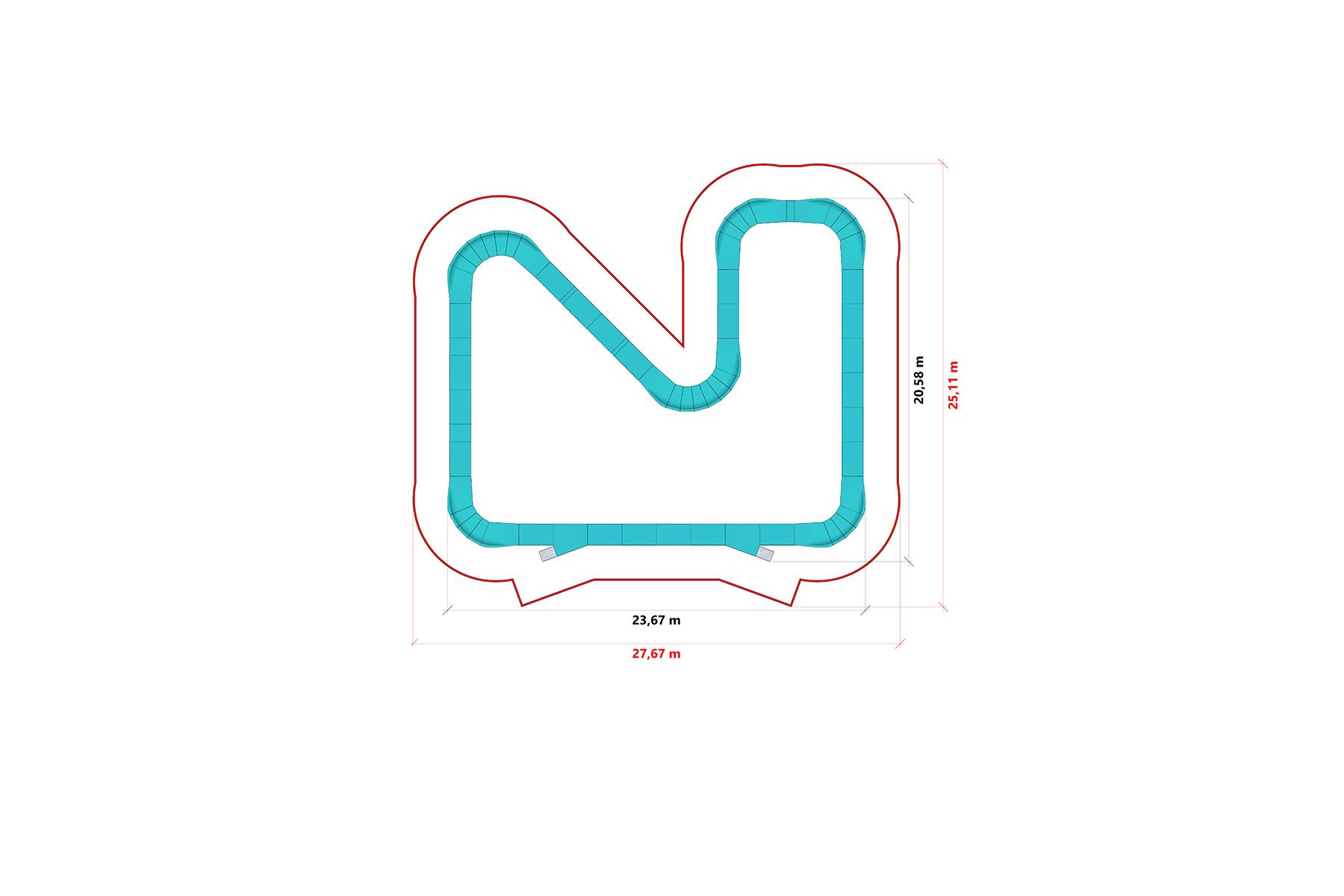 Modular design allows for quick installation and possible reconfiguration in the future. Thanks to a system of adjustable feet, the track can also be installed on uneven ground, which allows the facility to be adapted to different recreational spaces.