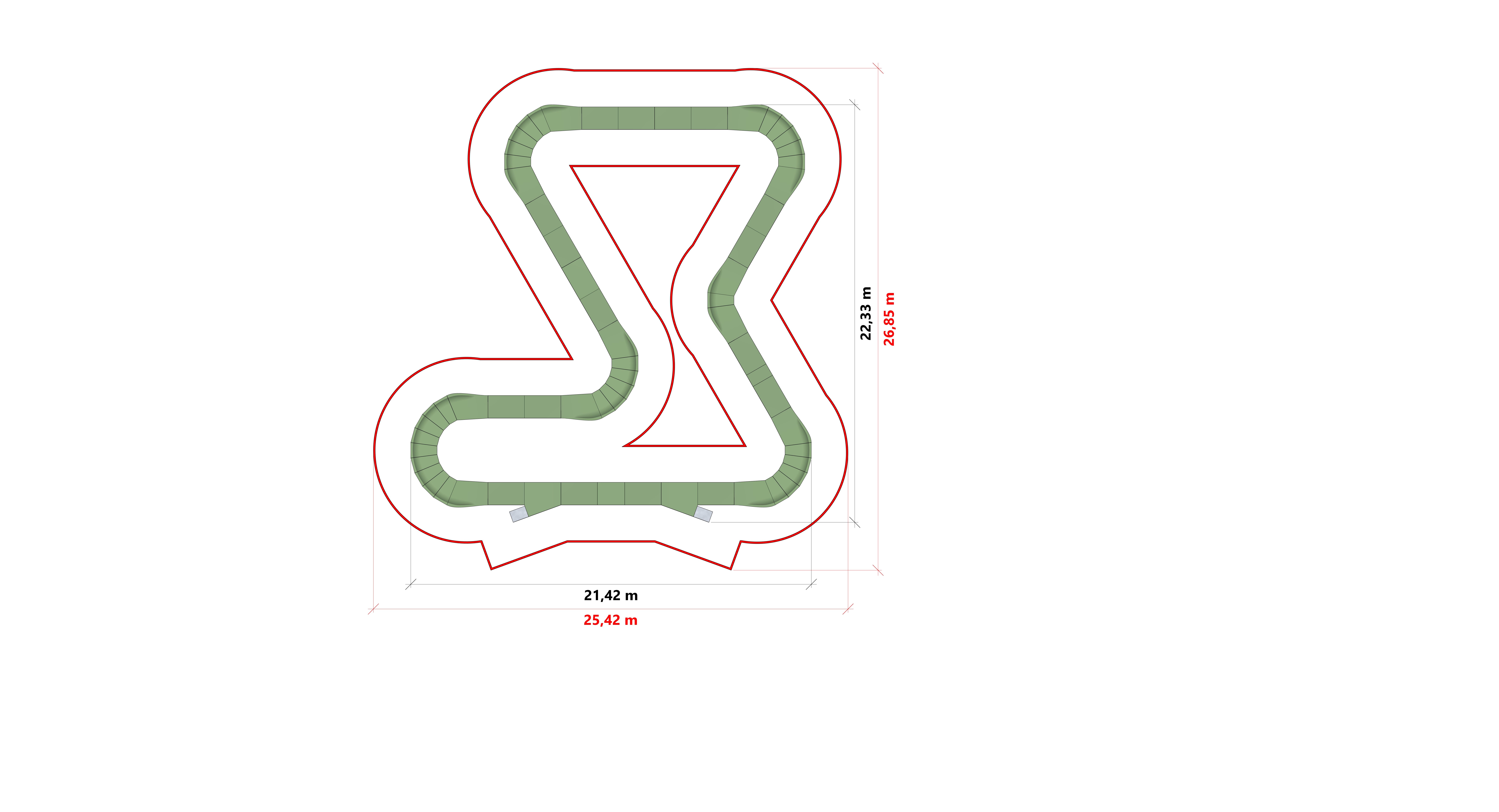 CAVE PF14E pumpbrautin er háþróuð braut með 89,1 metra keyrslufleti, kjörin fyrir hjólreiðafólk sem leitar áskorana og fjölbreytni í hjólreiðum sínum. Hann nær yfir svæði sem er 30,02 m á móti 33,63 m og býður upp á breiða og fjölbreytta braut sem hentar bæði byrjendum og reyndum notendum. Þökk sé traustum byggingu og vandaðri hönnun er CAVE PF14E pumptrack kjörinn fyrir garða, tómstundarsvæði og önnur opinber rými, og býður hjólreiðaaðdáendum upp á krefjandi upplifun og virka afþreyingu.
