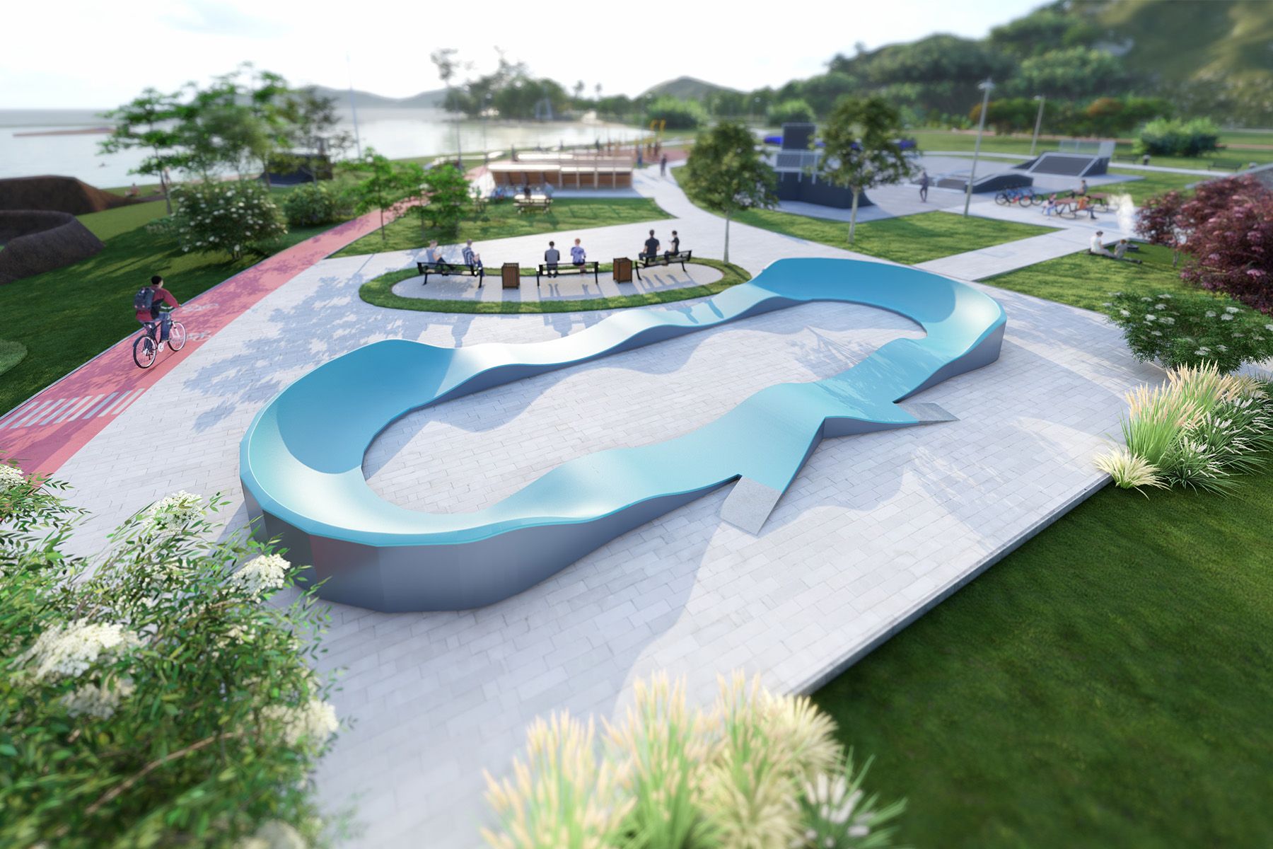 De 40 meter lange DESERT TF001 pumptrack is een modulaire fietspiste ontworpen voor fietsen, skateboards, inline skates en scooters. De lay-out van de baan is gebaseerd op een ritmische opeenvolging van moguls en bochten waarmee je snelheid kunt behouden door je lichaam goed te laten werken, zonder te hoeven trappen of af te duwen. Dankzij de duidelijke geometrie is de baan intuïtief in gebruik en werkt hij goed voor zowel beginners als gevorderden.