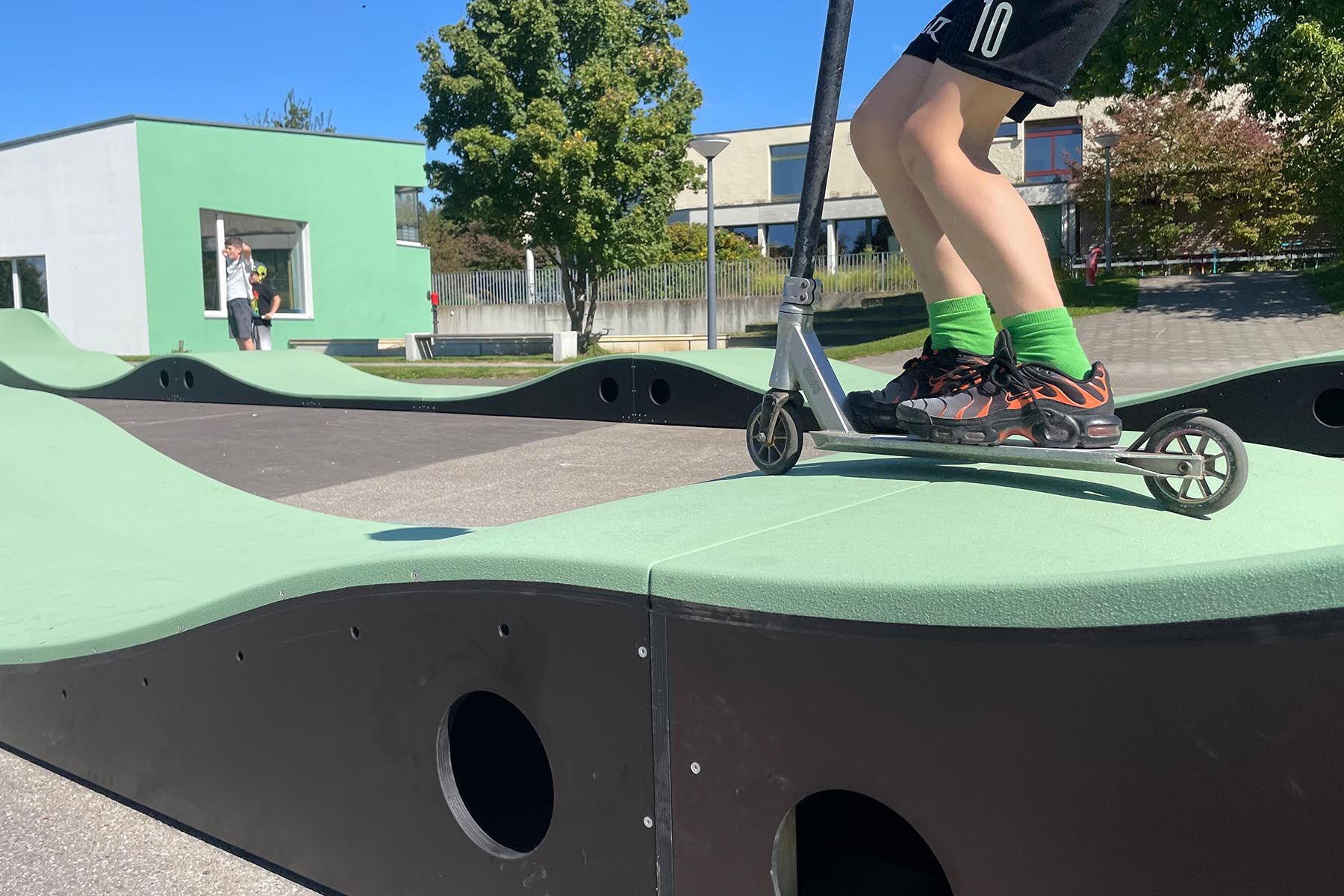 60 m lang familiepumptrack som ligger i Rubigen, kanton Bern, ved Schule Rubigen, Worbstrasse 13. Utstyrt med sidepaneler og inn- og utkjøringsmoduler, samt 6 klistremerker på panelene. Denne spesialtilpassede pumptracken er et flott sted for aktiv moro for hele familien.