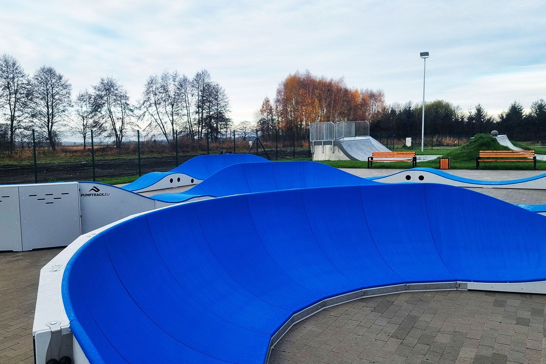 Vi har ferdigstilt en ny pumptrack i polyetylen i Dziemionna på Canal Street! Den 110 meter lange Silverstone PC7BEPE er en toppmoderne bane med inn- og utkjøringsmoduler og polstringsmoduler på bakveggen, noe som sørger for sikkerhet og komfort for brukerne. Pumptrack-banen er et flott supplement til den eksisterende skateparken i betong fra Techramps ved siden av, og skaper et idrettsanlegg som passer perfekt til behovene til aktivitetsentusiaster på sykkel, sparkesykkel og skateboard. Det er et sted som oppmuntrer til moro og utvikling av sportslige ferdigheter!