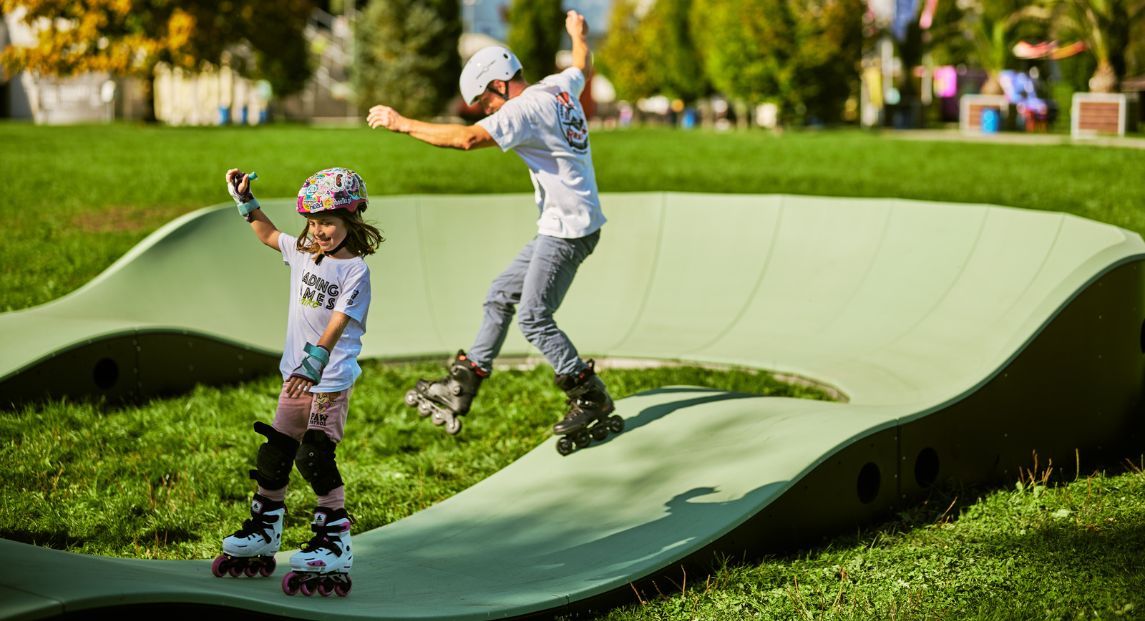 NYHET! Opplev ekte kjørekomfort med den nye Pumptrack Family-banen! Denne toppmoderne banen er ikke bare et sted for moro! Det er et eventyr som venter på å bli oppdaget, og et sted der du kan ta dine første skritt innen urban sport.