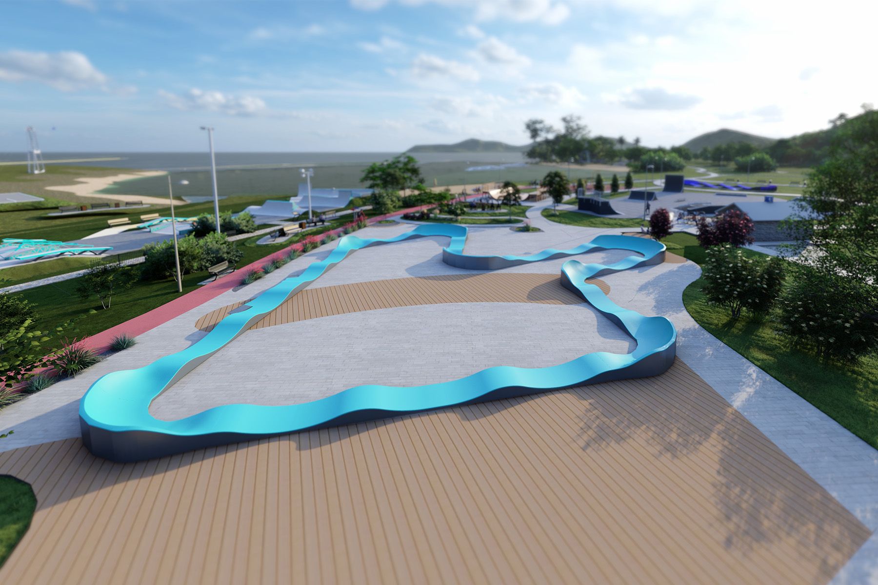 Den 103 m lange MESA TF016 pumptrack er en modulbasert sykkelbane designet for sykler, skateboard, inline-skøyter og sparkesykler. Banen er basert på en rytmisk sekvens av pukler og svinger som gjør at du kan holde farten oppe ved å bruke kroppen riktig, uten å måtte tråkke eller skyve fra. Takket være den oversiktlige geometrien er banen intuitiv å bruke og fungerer godt for både nybegynnere og mer avanserte brukere.