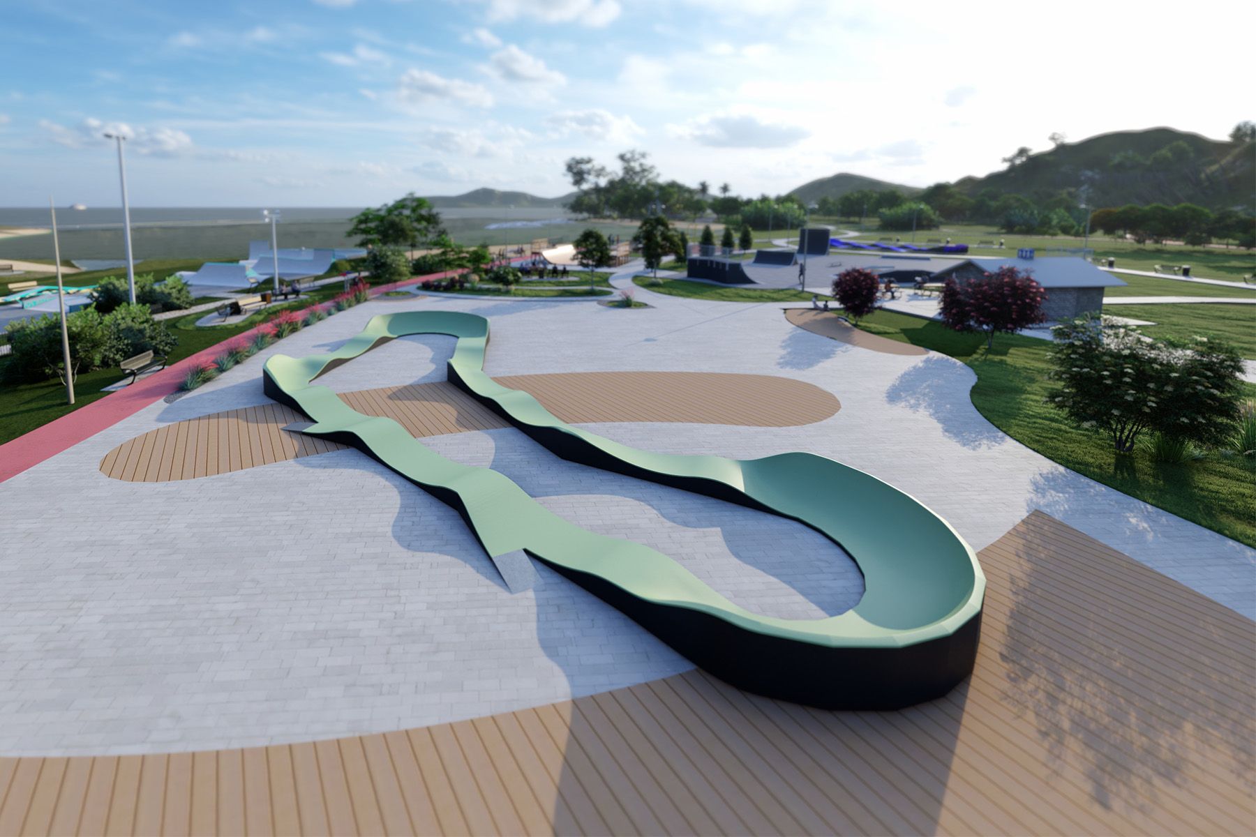Den 60,1 m lange pumptracken Flow Series SEINE er en bane som er designet for en mer dynamisk og flytende kjøring. Den særegne utformingen av kurver og bølger skaper en kjørelinje som engasjerer brukeren ikke bare i en opp-og-ned-bevegelse, men også i en høyre-venstre-bevegelse, noe som gjør kjøringen mer rytmisk...