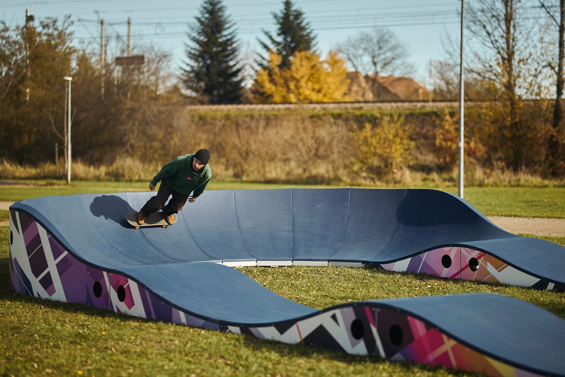 To rozwiązanie, które dobrze sprawdza się w przestrzeni publicznej: nie wymaga skomplikowanej konserwacji, jest odporne na intensywne użytkowanie, a dzięki dopracowanej geometrii pozostaje komfortowe zarówno dla początkujących, jak i bardziej zaawansowanych użytkowników. Dodatkową zaletą jest szerszy tor, który poprawia wygodę i bezpieczeństwo jazdy, a także możliwość dopasowania kolorystyki obiektu do charakteru danej inwestycji.