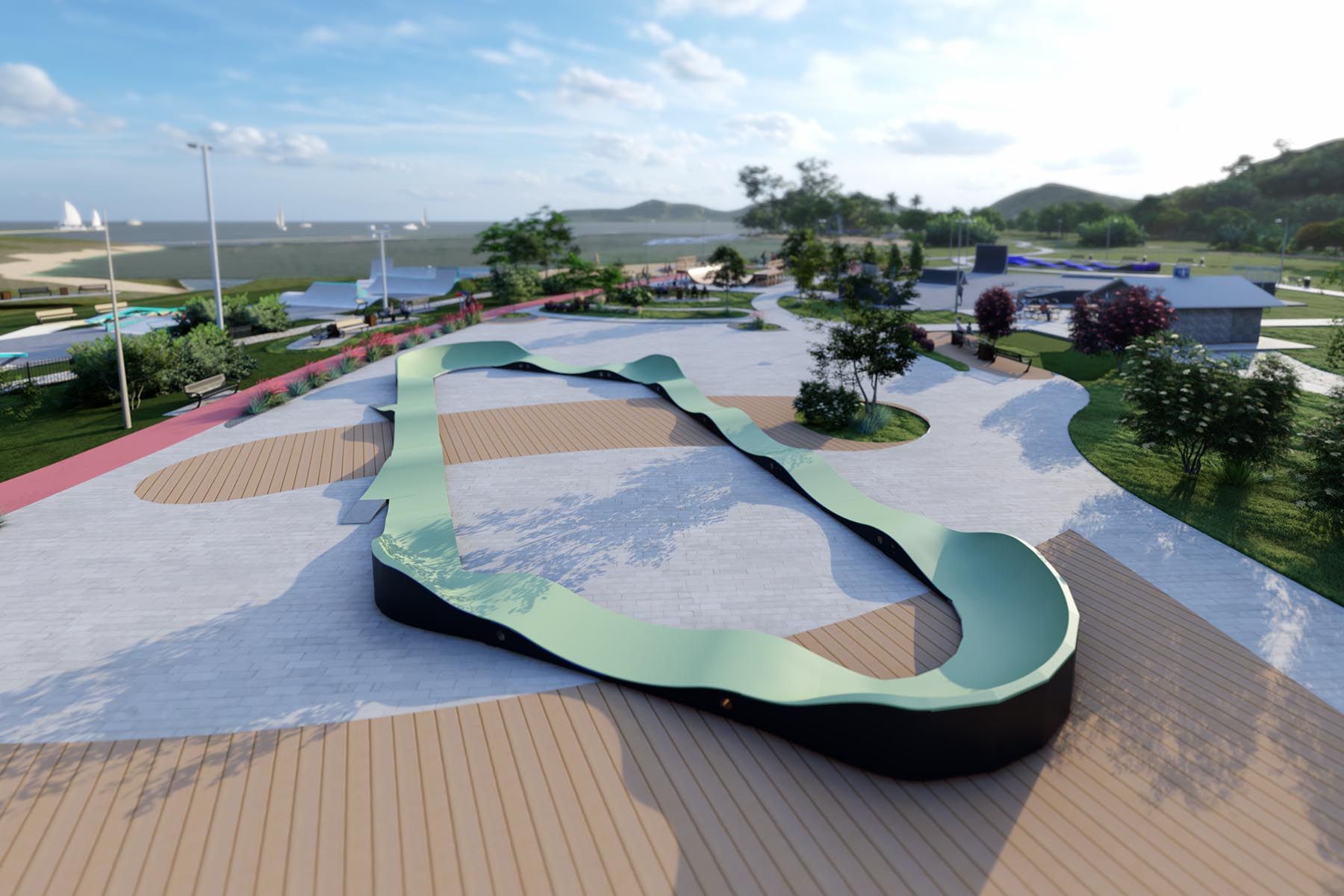 Pumptrack VALLEY PF5E este o pistă impresionantă cu o lungime a suprafeței de rulare de 59,6m, ideală pentru bicicliștii care caută o varietate de provocări. Acoperă o suprafață de 11,06m x 22,11m, oferind o pistă largă și variată care se va potrivi atât începătorilor, cât și utilizatorilor avansați. Datorită designului său atent, Pumptrack VALLEY PF5E este ideal pentru parcuri, zone de agrement și alte spații publice, oferind divertisment excelent și recreere activă.