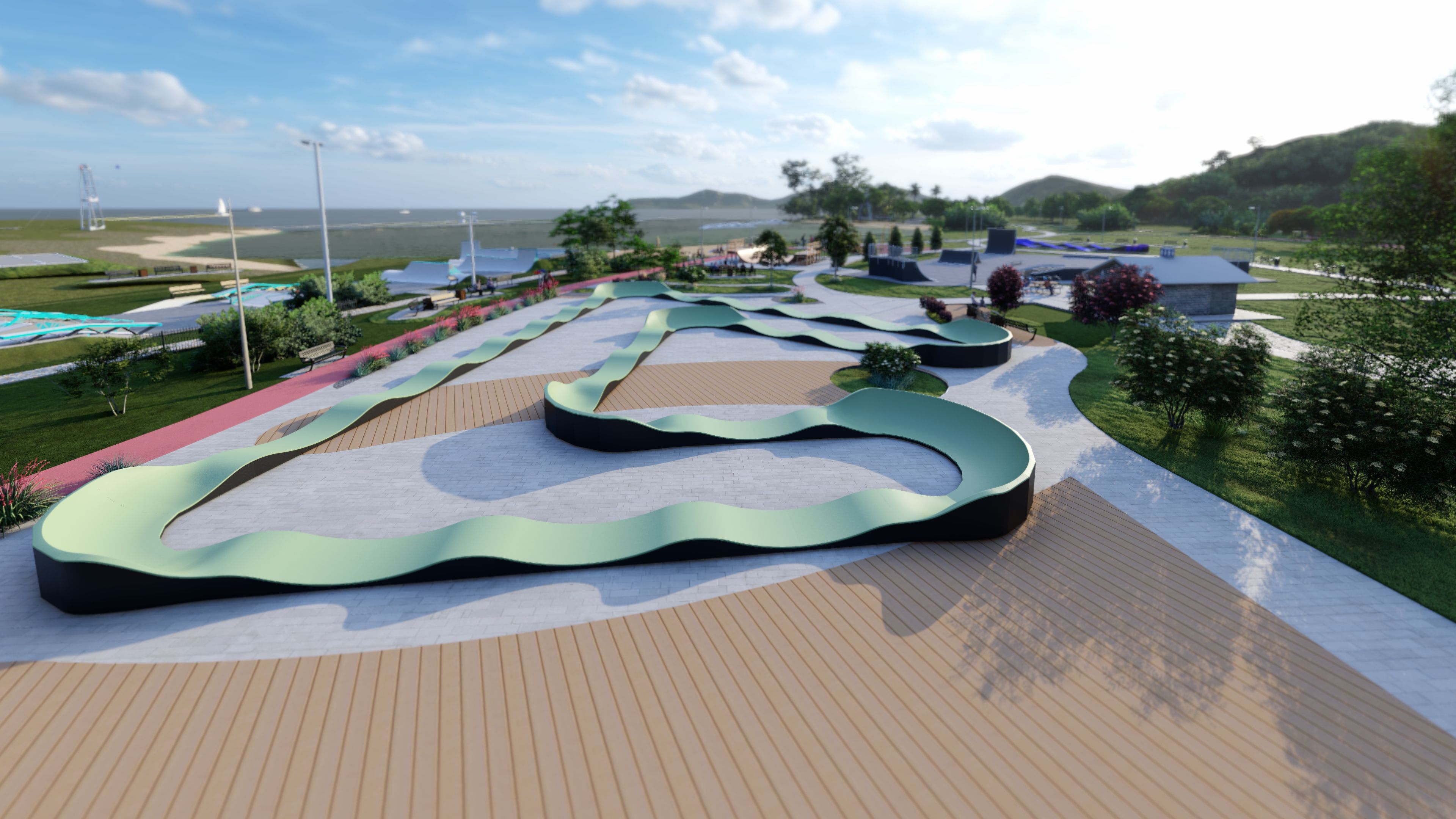 Pumptrack VULCANO PF19E este o pistă avansată cu o suprafață de rulare lungă de 125,5 m, ideală pentru bicicliștii care caută provocări și varietate în ciclismul lor. Acoperă o suprafață de 32,62m x 33,50m, oferind o pistă largă și variată care se va potrivi atât începătorilor, cât și utilizatorilor experimentați. Datorită construcției sale robuste și designului atent, Pumptrack VULCANO PF19E este perfect pentru parcuri, zone de agrement și alte spații publice, oferind o experiență intensă și o recreere activă pentru toți pasionații de ciclism.