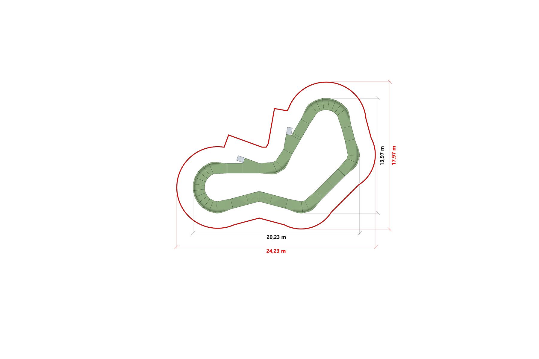 Pista este realizată în tehnologia lemnului, bazată pe o construcție modulară din placaj cu o suprafață de rulare durabilă. Sistemul modular permite instalarea rapidă pe asfalt, beton sau teren pregătit corespunzător, precum și posibilitatea de extindere și reconfigurare viitoare a pistei.