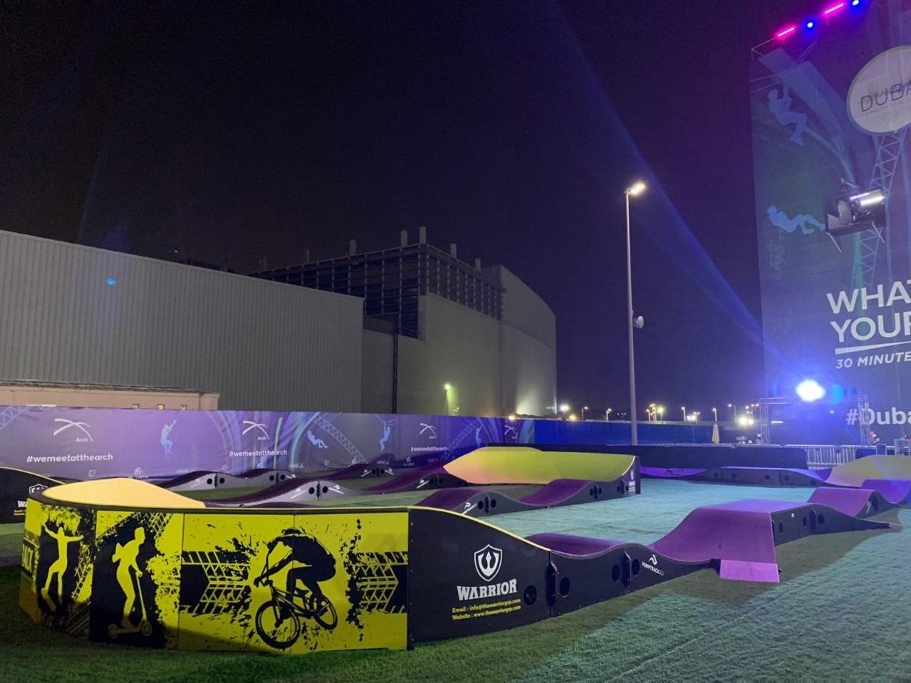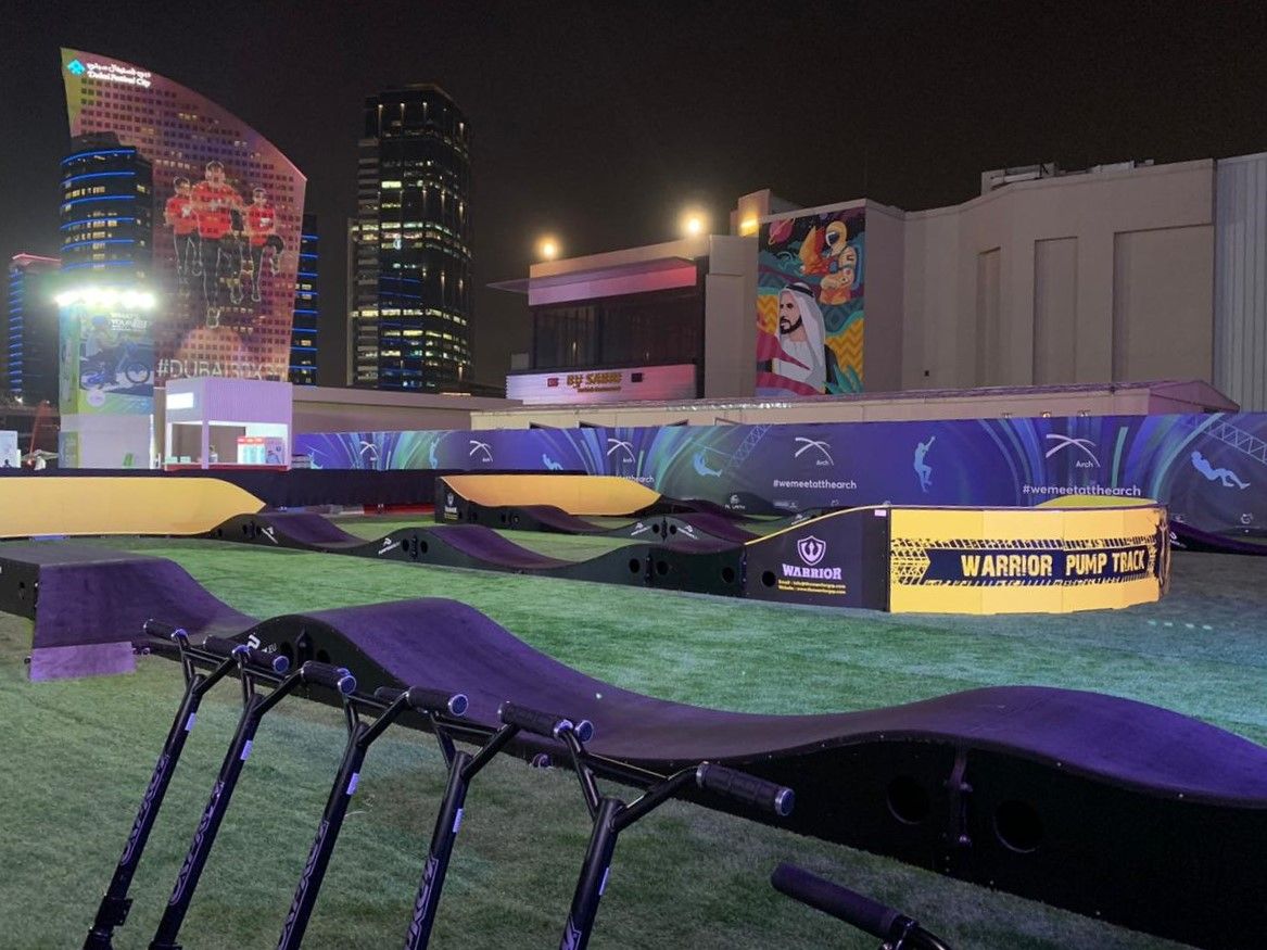 Ми завершили будівництво першого в Дубаї памптреку - надсучасної велодоріжки для дітей та дорослих, яка ідеально вписується в динамічний ландшафт міста. Оточена хмарочосами, вона являє собою унікальне поєднання спорту та сучасної інфраструктури, пропонуючи мешканцям і туристам інноваційний простір для катання на велосипеді, скейтборді, роликах і самокаті.